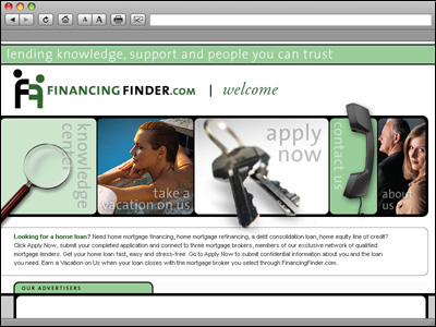 This Financing Finder is designed to couple lenders and brokers with anyone seeking an affordable mortgage with the added benefit of taking a vacation upon your home closing. This site was very popular for a time during the early 2000's.