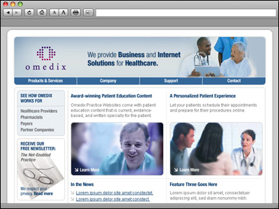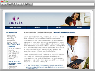 Omedix offers a suite of Web-based services exclusively for healthcare practices. Omedix helps their clients increase revenue, decrease costs, improve patient care, education, and boost patient satisfaction by making smart use of the endless possibilities of the internet. The The Brand Navigator did not design the current site.