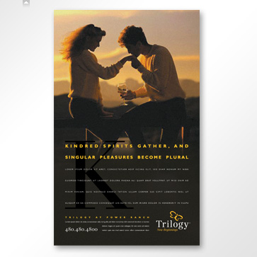 This marketing campaign was designed to attract a more sophisticated adult audience to the very successful development called Trilogy by Shea Homes. Located throughout the western United States, this community features many unique offerings designed for adults with a more refined sense of style.